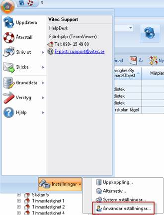 Välj Inställningar / Användarinställningar.