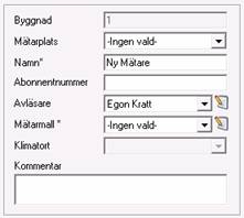 höger om fältet för Avläsare resp. Mätarmall kommer direkt till dialogen för att
