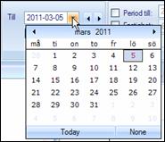Periodens slutdatum specificeras genom att önskat datum skrivs in, väljs från kalendern eller genom att stega med hjälp av pilknapparna.