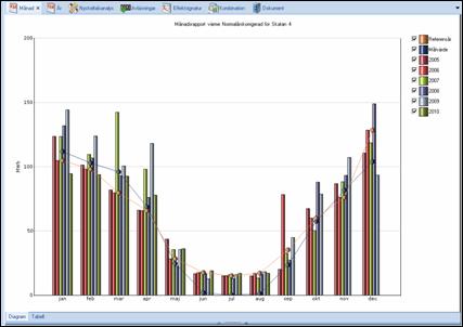 I månadsrapporten visas Referensåret och Målvärdet som en linje i diagrammet. Du kan välja att ta bort dem genom att klicka ur dem på högra sidan i diagrammet.