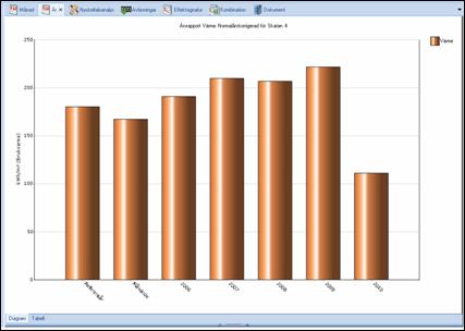 När Jämförelser väljs i Årsrapport är det en skillnad mot hur det ser ut i Månadsrapport. I stället för en linje visas det en stapel som jämförelse med valda år Om du väljer Årsrapport som Glidande, kommer ingen Jämförelser visas i diagrammet.