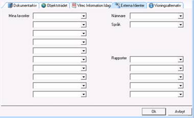 Fliken Externa klienter visas endast för endast Vitec Energiuppföljning.