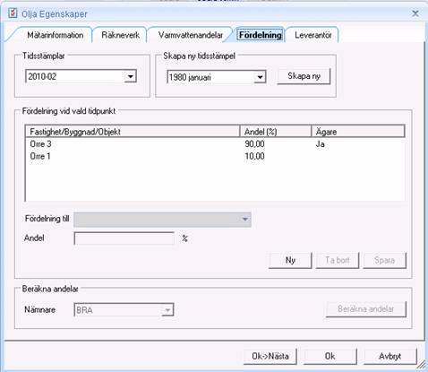 Om en mätare tillförande en fastighet/byggnad förser även en annan fastighet/byggnad kan den andel som tillhör den andra fastighet/byggnad ”flyttas över” genom att en fördelningen anges.