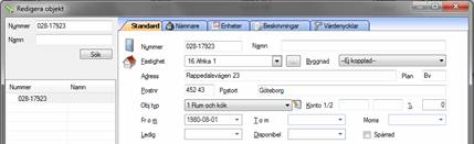 Värden i dropdown-listorna Fastighet samt Byggnad.