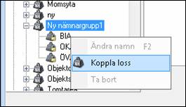 En nämnare kan kopplas loss från en nämnargrupp. Högerklicka på nämanren och välj Koppla loss.