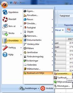 Gränssnittet för att hantera leverantörer öppnas via Grunddata / Kostnad och miljö / Leverantör enligt bild nedan.
