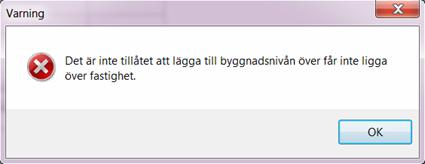 Bild 13: Felmeddelande - Inte tillåtet att lägga byggnads- över fastighetsnivån