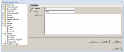 När du har skapat Värdenyckelgrupper kommer du att kunna skapa undernivåer (värdenycklar) för varje grupp. Detta gör du genom att välja kommandot Värdenyckel från Grunddatamenyn.