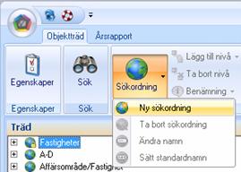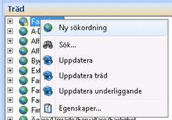 För att skapa en ny Sökordning klicka antingen på knappen Sökordning / Ny sökning eller högerklicka i trädet och välj Ny Sökordning.