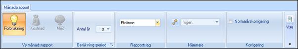 Under denna del väljs vilken typ av rapport som panelen ska innehålla. De rapporter man kan välja finns som standardrapporter med egna flikar i Vitec Energiuppföljning. Aktuella val är: