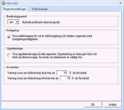 Via fliken Rapportinställningar finns installningar kopplade till rapporter.