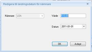 För att kunna redigera ett värde eller ett datum måste man ha historikläget aktivt. Markera det värde som ska redigeras och tryck knappen Redigera. I dialogrutan som visas kan man ändra både värde och datum.