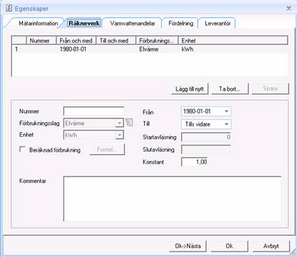 Den valda mätarmallen är bara en hjälp vid skapandet av mätaren. Om så önskas kan ytterligare räkneverk läggas till genom att klicka på Lägg till nytt eller räkneverk tas bort genom att klicka på Ta bort.