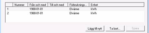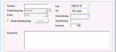 Om detta alternativ aktiveras kommer mätaren förbrukning att beräkna m.h.a. den formel som anges efter klick på Formel. Ang. hur en formel skapas se kapitlet Beräknad förbrukning nedan. |