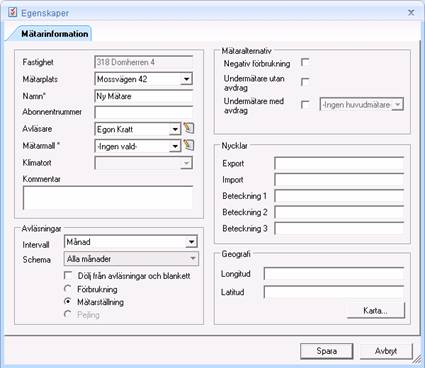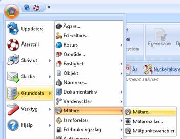 Mätare skapas via Grunddata /Mätare /Mätare, se bild nedan.