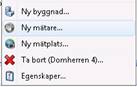 Alternativt skapas mätare genom att i trädet högerklicka på aktuell fastighet, byggnad eller mätarplats och välja ”Ny mätare” enligt bild nedan.