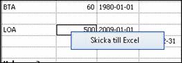 Innehållet i tabellerna kan skickas till en Excelfil. Högerklicka någonstans i den tabell som ska skickas och klicka Skicka till Excel i popup-menyn som då visas.