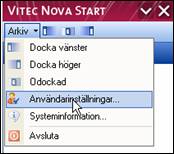 Om enbart en produkt används från Vitec Fastighetssystems produktsuite är det möjligt att ställa in Vitec Start så att enbart denna produkt startas upp direkt utan inblanding av Vitec Start. Detta görs genom att välja kommandot Arkiv, Användarinställningar i Vitec Start.