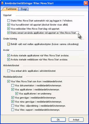 I dialogrutan som nu visas är det bara att markera rutan ”Starta senast använda applikation vid uppstart av Vitec Start” för att den angivna prodkten alltid ska starta direkt.