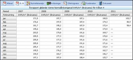 Årsrapporten tabell innehåller månadsvärden för aktuell vald mätare för varje år.