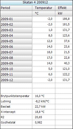 Här visas de olika effekterna vid de olika temperaturerna. Här visas vid vilken temperatur som uppvärmningen påbörjas, hur stor baslasten vilket är det samma som den icke utomhustemperaturberoende delen.