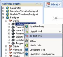 För att radera en nivå i en struktur måste du markera en av noderna på den nivå som du vill ta bort och högerklicka.