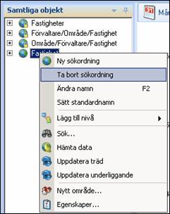 Om du vill radera en struktur helt och hållet, markera den översta noden i strukturen och högerklicka.