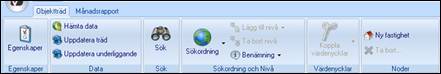 Samtliga objekt har även en tillhörande menyradsflik ”Objektträd” med funktioner enligt Bild 5 nedan.
