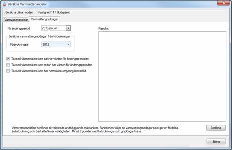 Beräkningen av VVGD startas via knappen Beräkna och redovisar resultatet i listan Resultat.