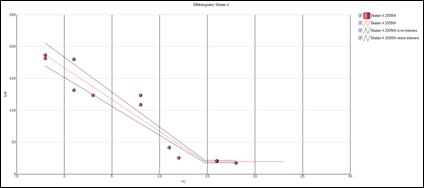 När tolerans valts i % från ursprungskurvan så visas beräknade kurvor från den som visar den valda %-satsen plus-minus ursprungskurvan. Väljs 10% kommer kurvan att se ut på följande sätt.