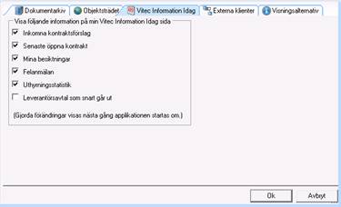 Bild 3 - Användarspecifika Systeminställningar – ”Vitec Information Idag”