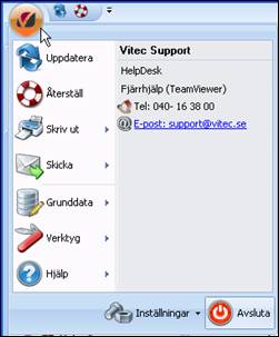 Vitecknappen är placerad längst uppe till vänster i gränssnittet, Bild 11 visar Vitecknappen och den meny som visas då knappen aktiveras.