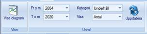 Är knappen ”Visa diagram” intryckt kan användaren även välja att se åtgärder för en viss åtgärdsfas, om diagrammet ska visa åtgärdstyper samt det lägsta antalet åtgärder som ska tas med i urvalet.