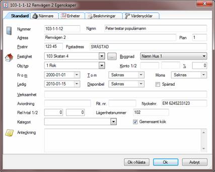 Nya objekt markeras på den skapade fastigheten och kallas "Nyligen skapad fastighet". På detta sätt är det möjligt att direkt lägga till objekt till fastigheten utan att behöva gå via Grunddata.
