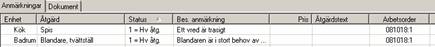 Bild 77 - Arbetsordernummer i anmärkningslistan
