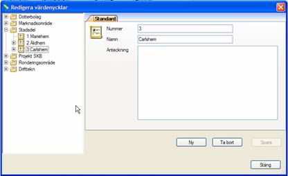 Upprepa för varje värdenyckel som ska skapas. Bilden nedan visar gruppen Stadsdel med några värdenycklar.
